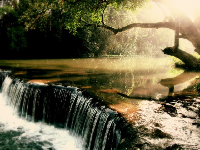 Wallpaper Overgrown river with waterfall