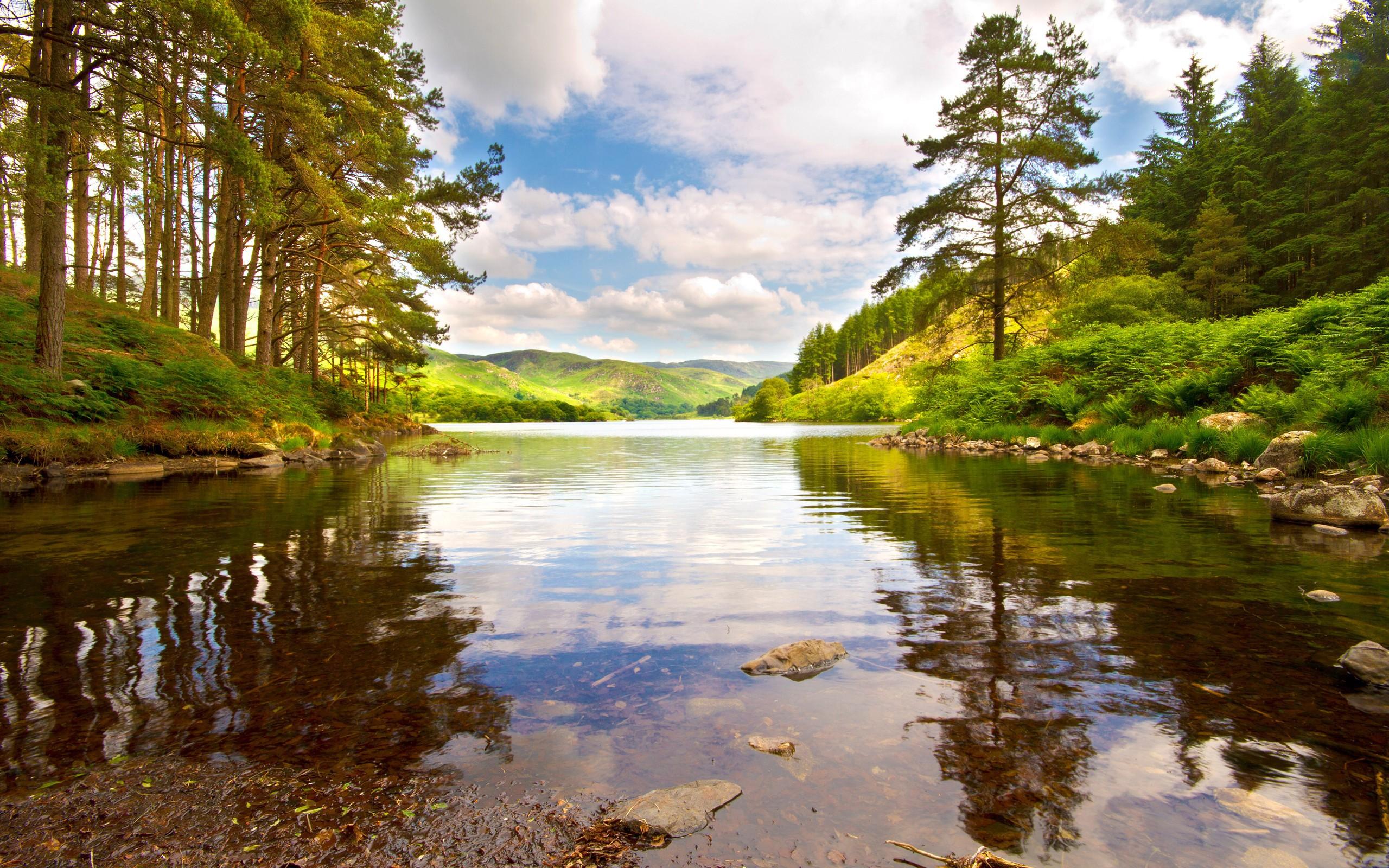 Wallpaper Forest lake among the hills