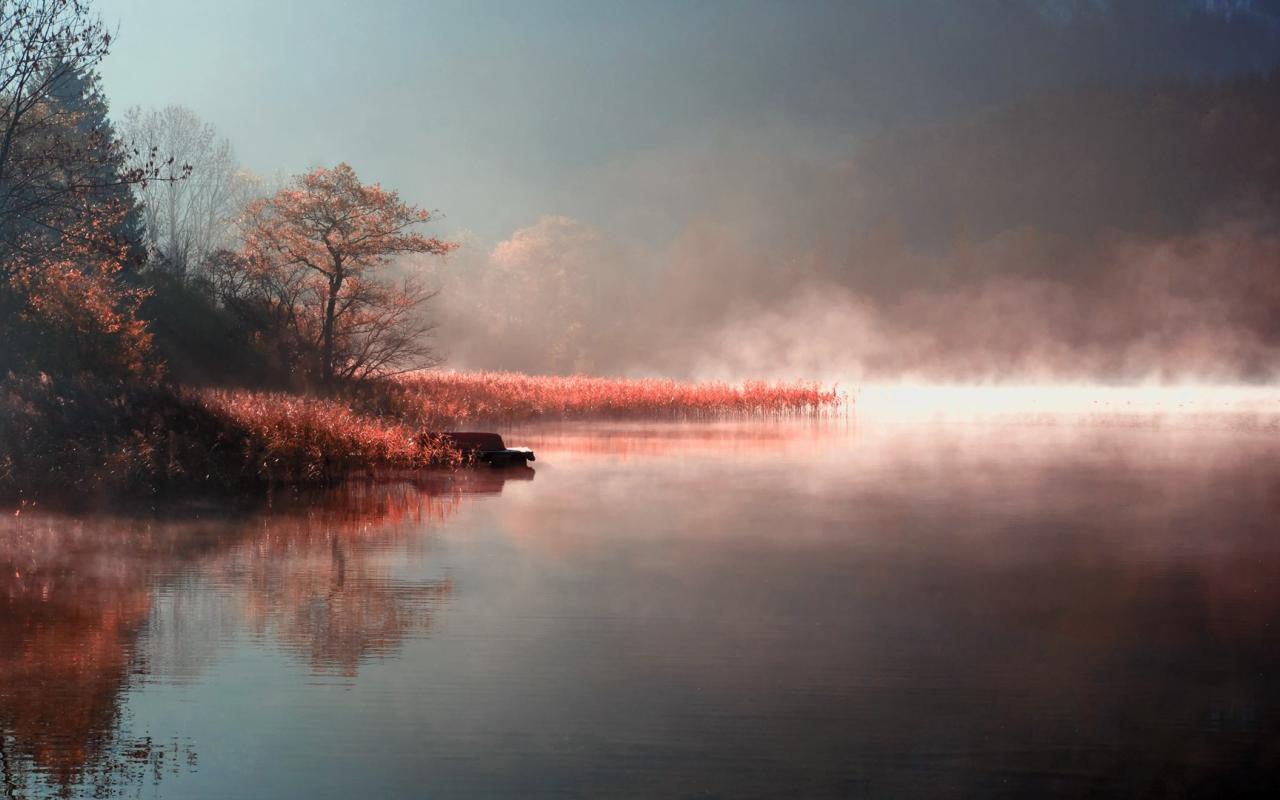 Wallpaper Morning fog over the lake