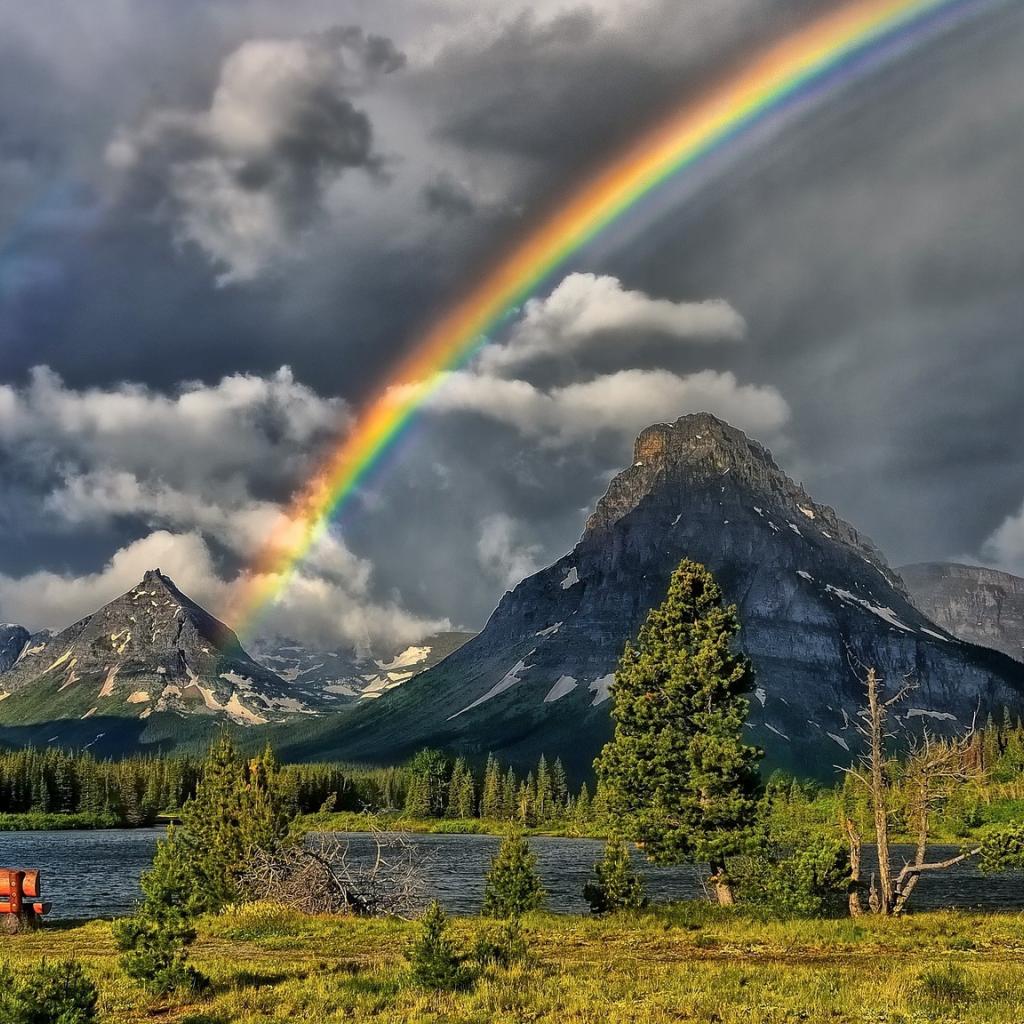 Wallpaper Rainbow over the mountain lake
