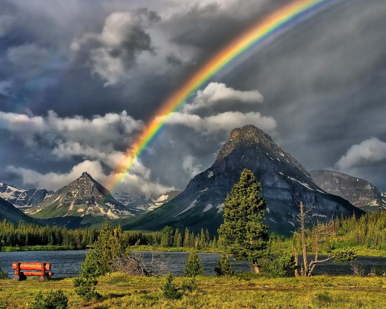 Wallpaper Rainbow over the mountain lake