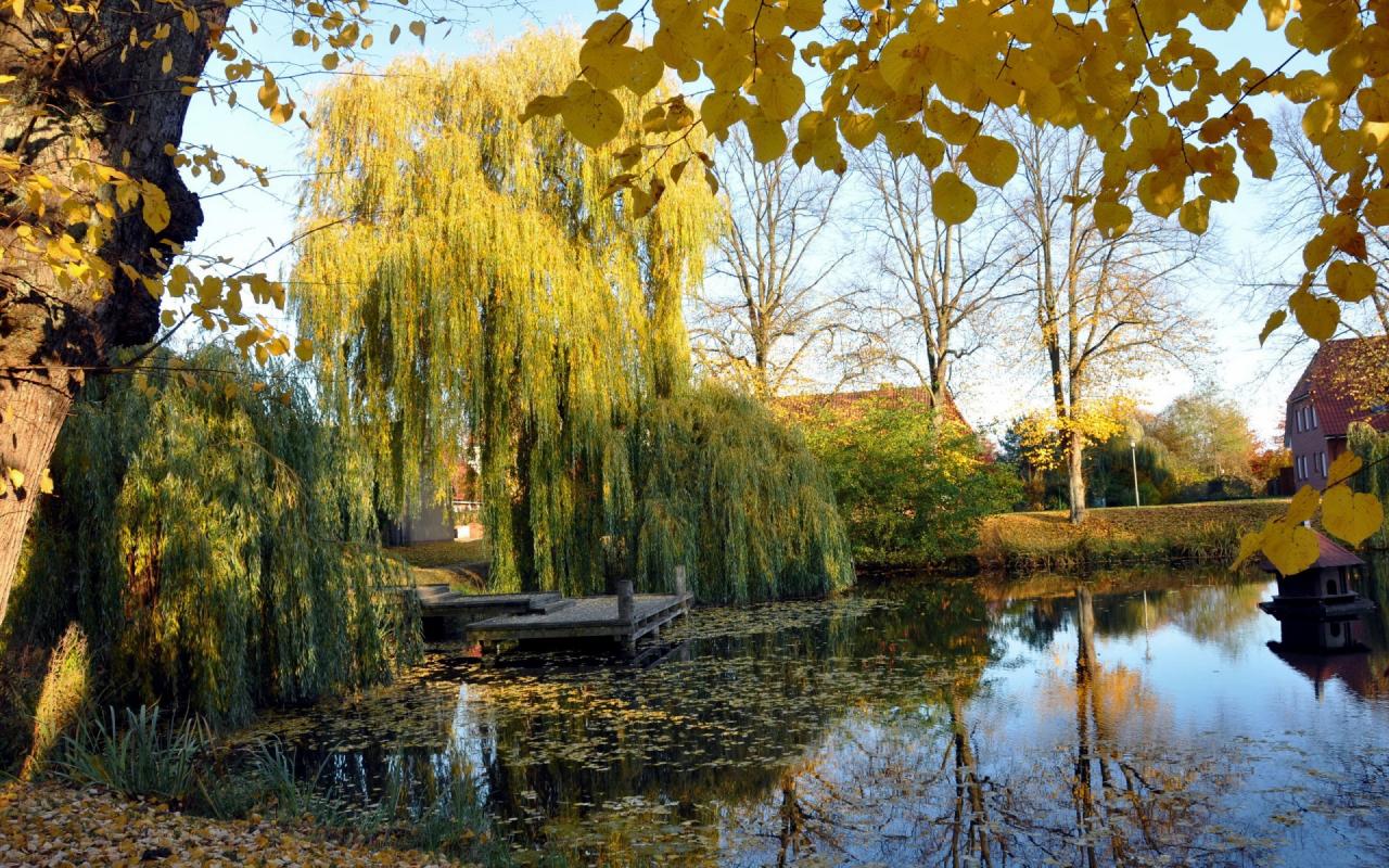 Wallpaper Weeping willow pond