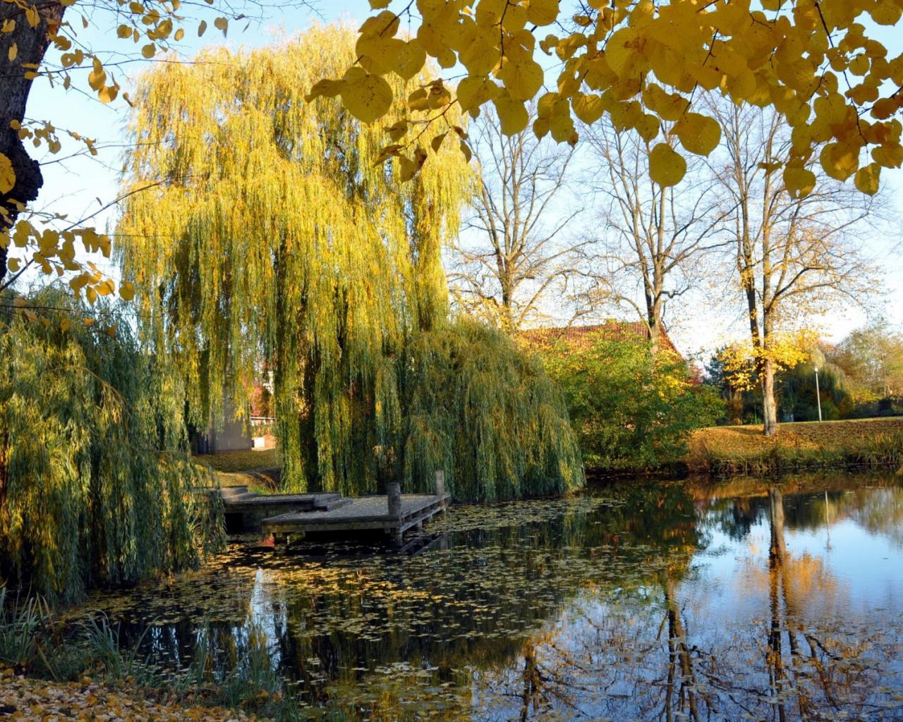 Wallpaper Weeping willow pond