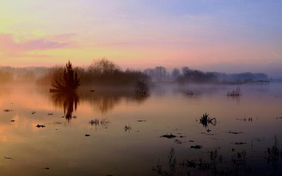 Wallpaper Fog over the lake in the fall