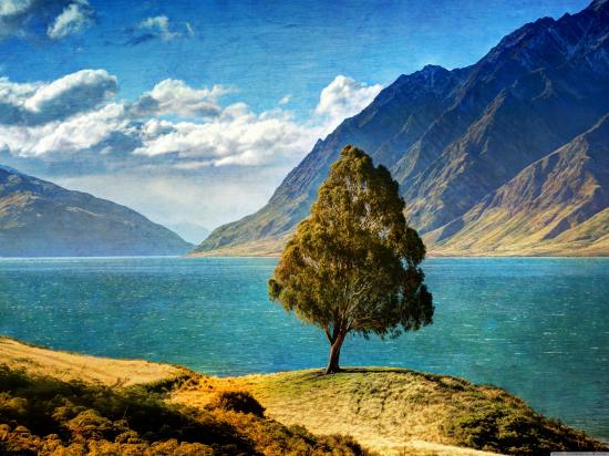Wallpaper The tree in the middle of the lake in New Zealand