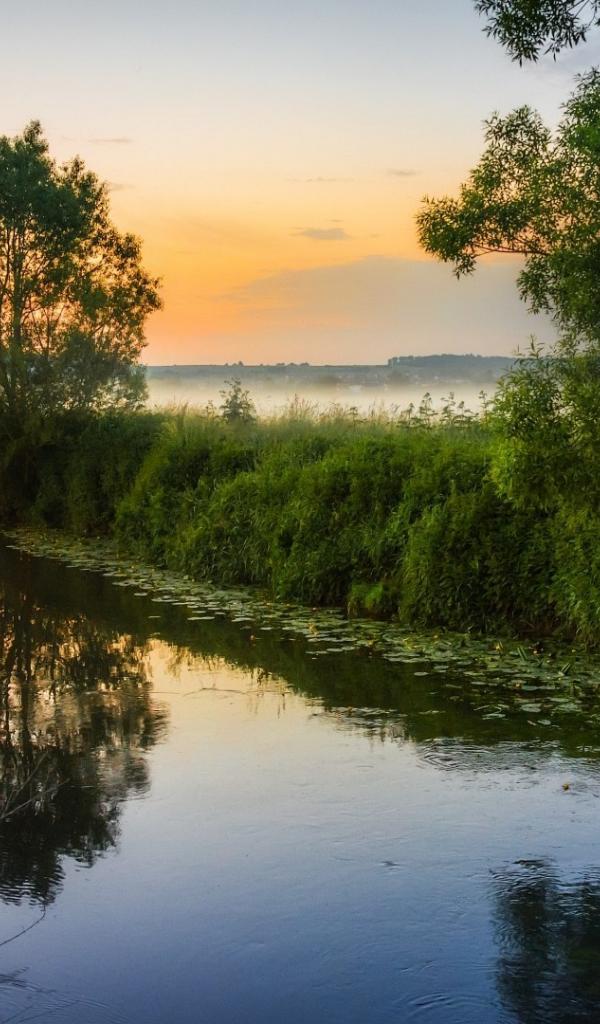 Wallpaper Fog over the small river