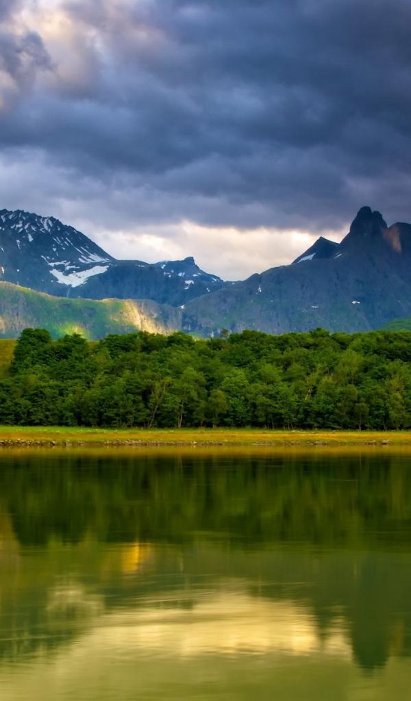Wallpaper Green Lake in a mountain valley