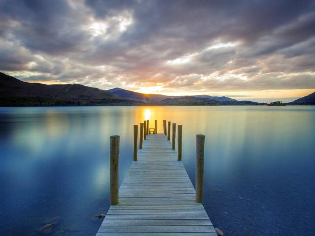Wallpaper Pier on the lake before sunset