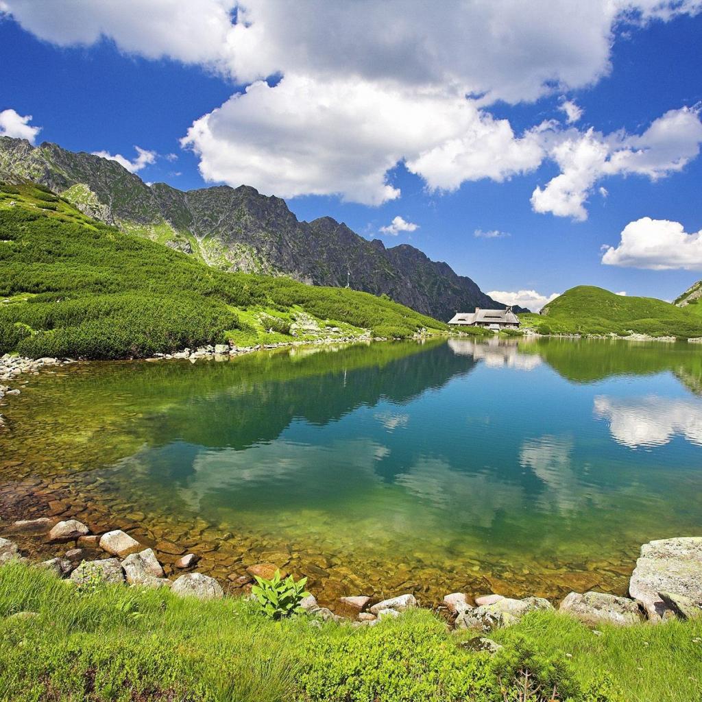Wallpaper The house on the shore of a mountain lake