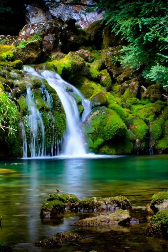 Wallpaper Fabulous waterfall on the lake in the jungle