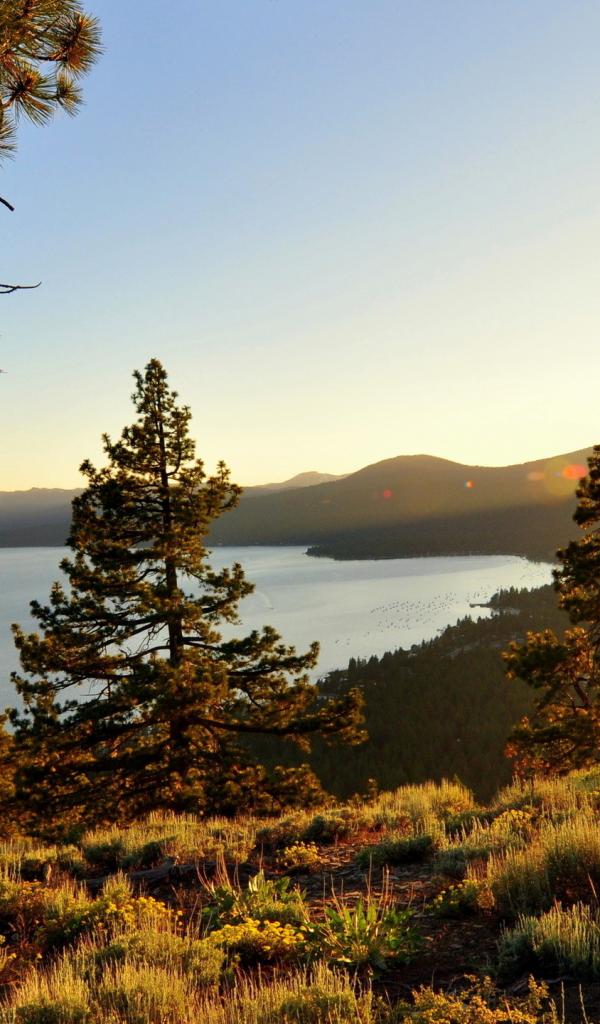 Wallpaper Rays of the sunset over the lake