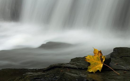 Wallpaper Autumn leaf in waterfall