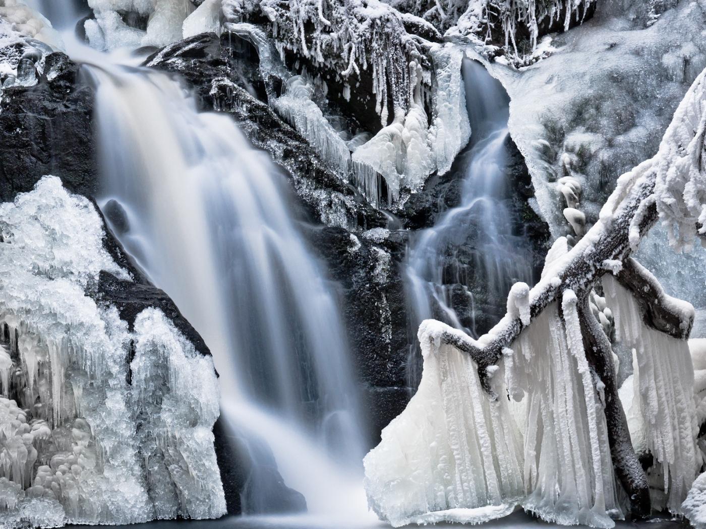 Wallpaper Accumulation of ice on the waterfall during a frost