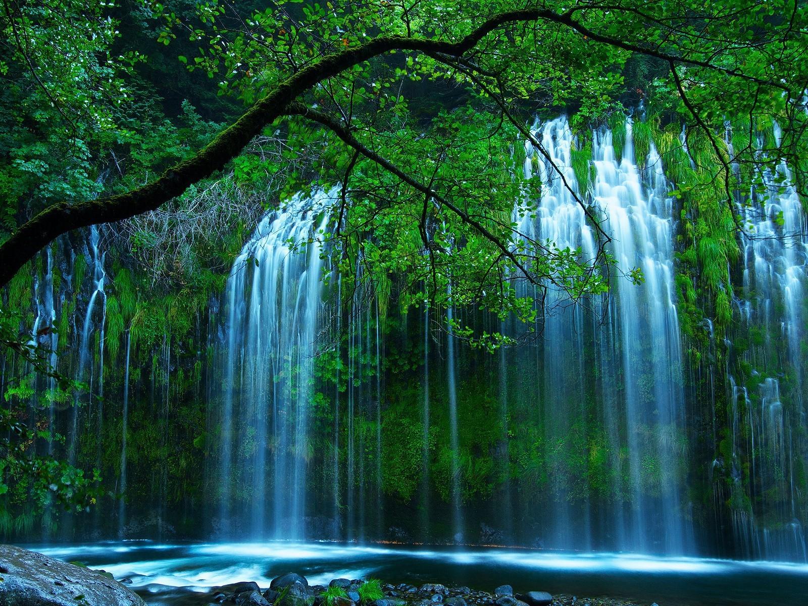 Wallpaper Beautiful waterfall in the green in the woods
