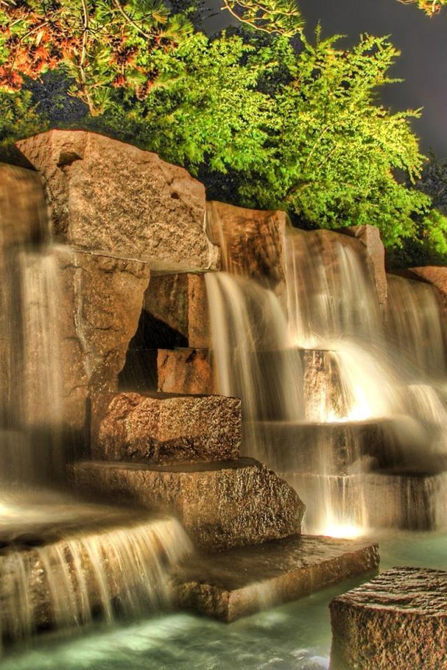 Wallpaper Artificial waterfall on the square stones