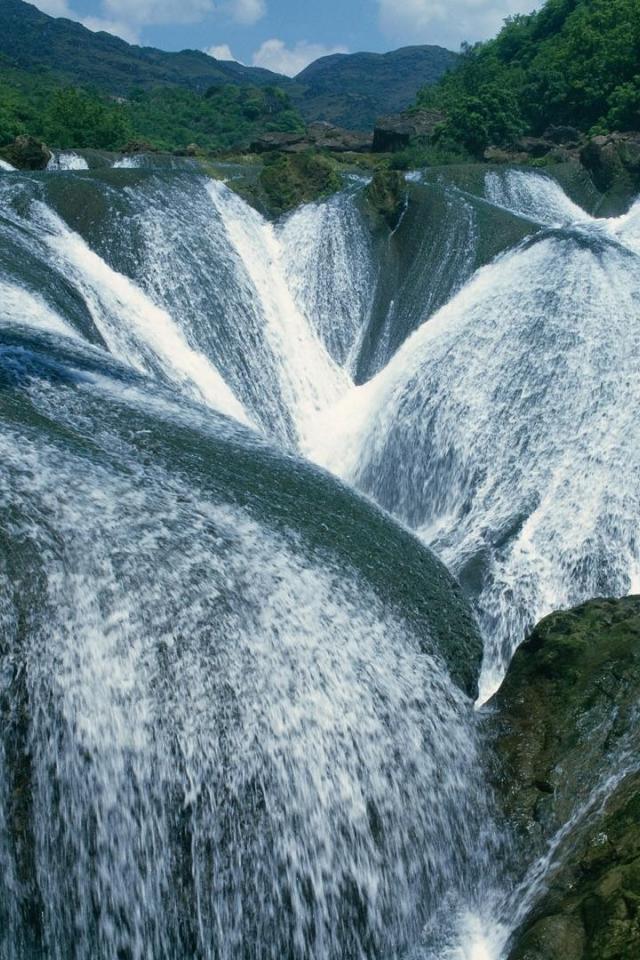 Wallpaper Unusual waterfall in ravine