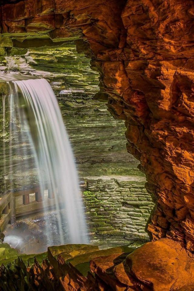 Wallpaper Waterfall inside the cave