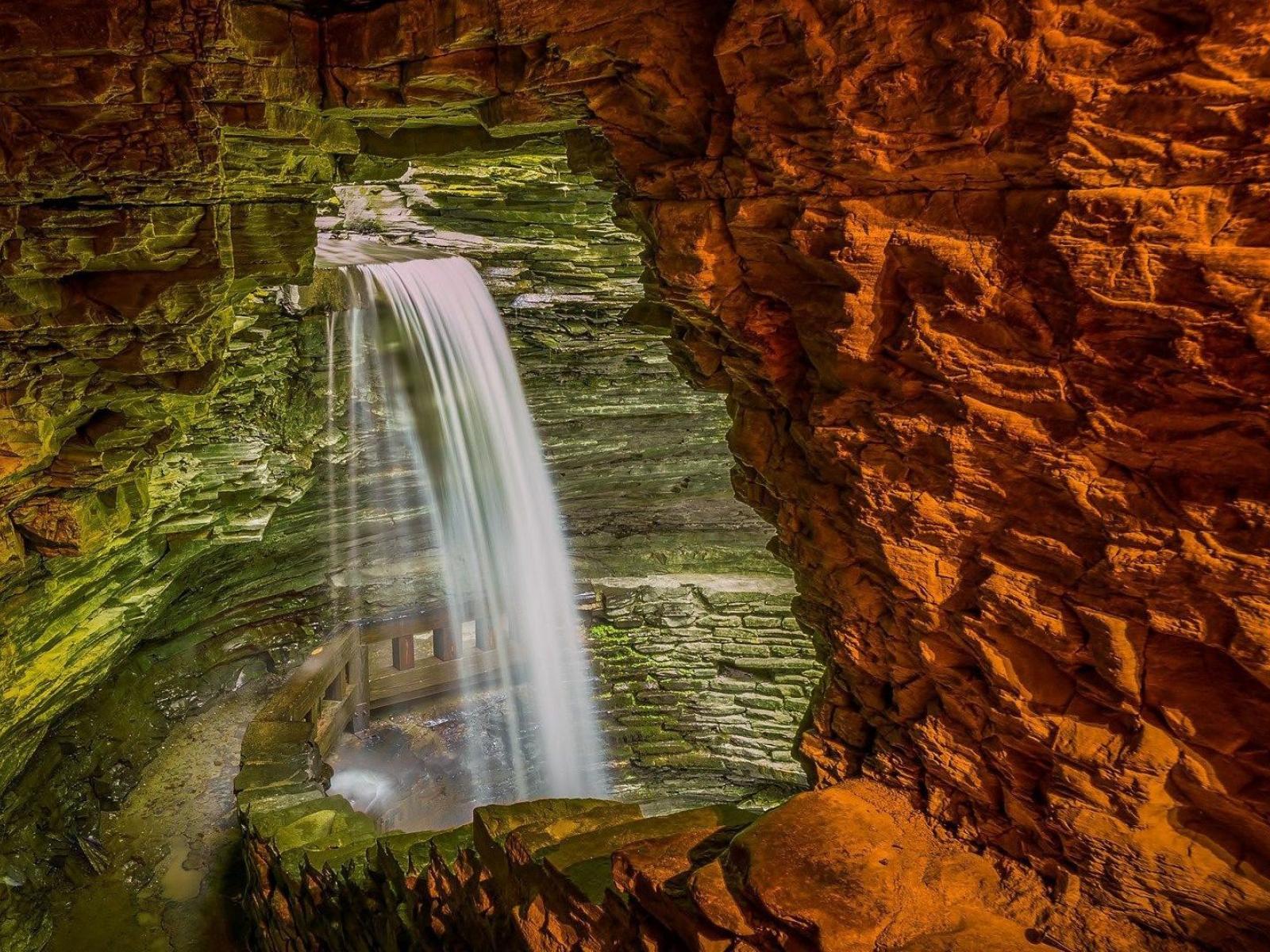 Wallpaper Waterfall inside the cave