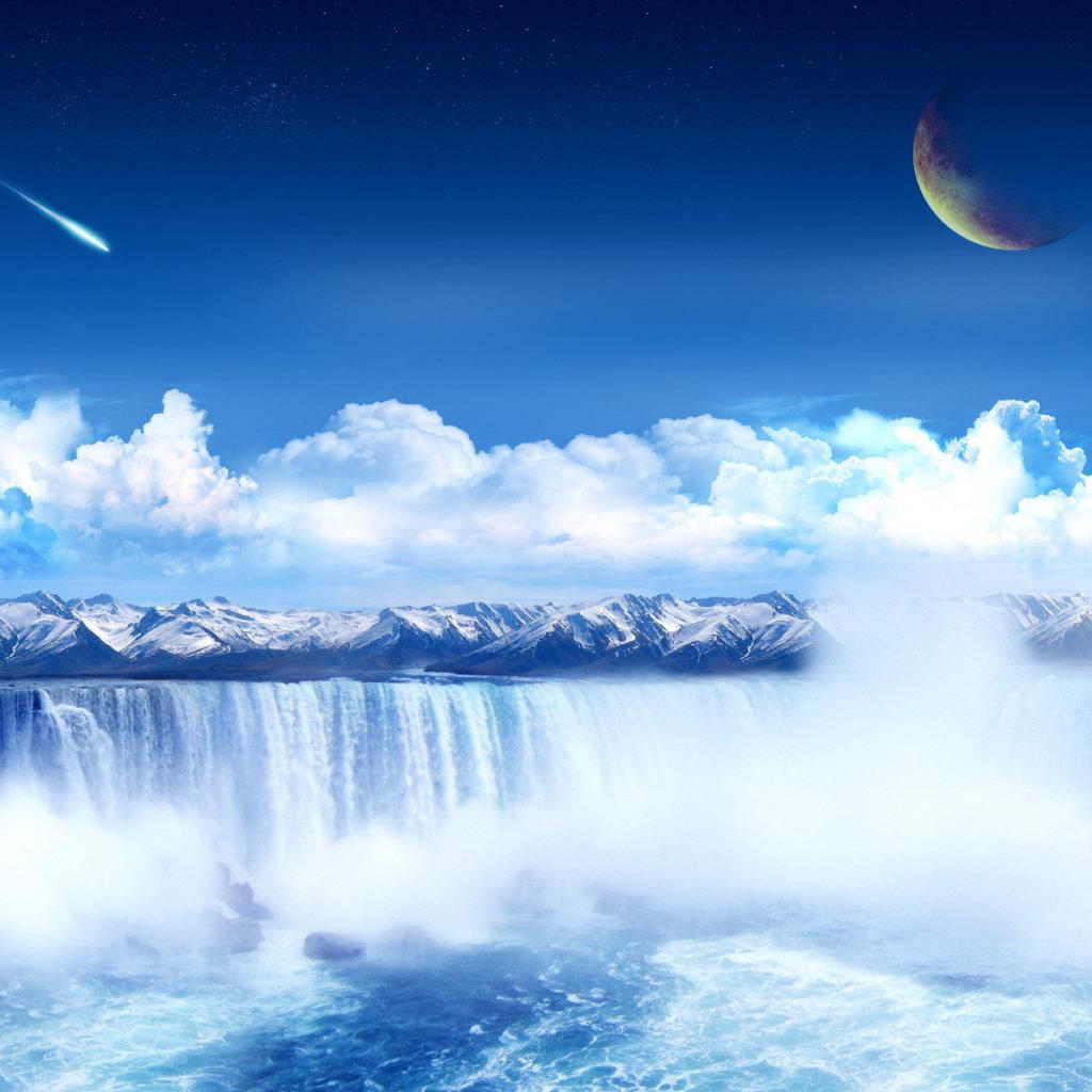 Wallpaper The meteorite fell over the waterfall