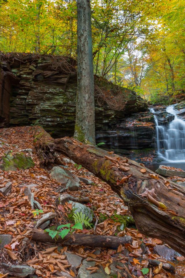 Wallpaper Moss-covered rocks on the background of a waterfall