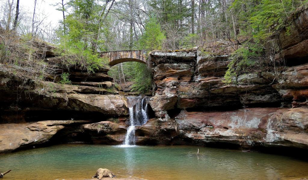 Wallpaper Bridge over waterfall
