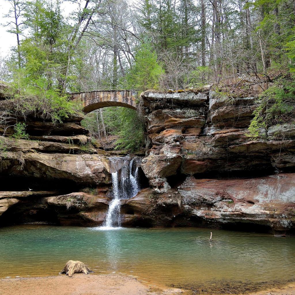 Wallpaper Bridge over waterfall
