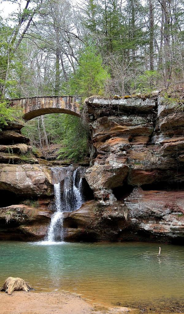 Wallpaper Bridge over waterfall