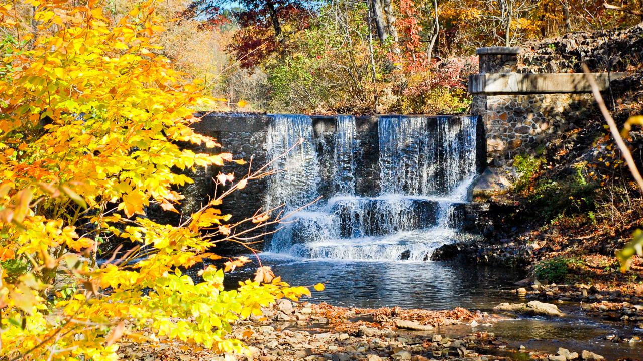 Wallpaper Artificial waterfall in autumn