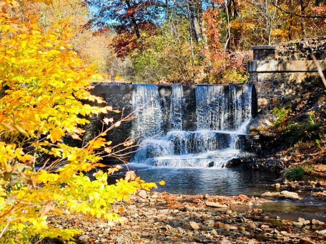Wallpaper Artificial waterfall in autumn