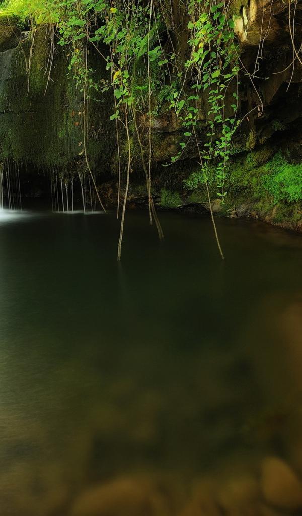 Wallpaper Waterfall in the green grass