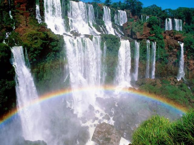 Wallpaper Rainbow under a waterfall