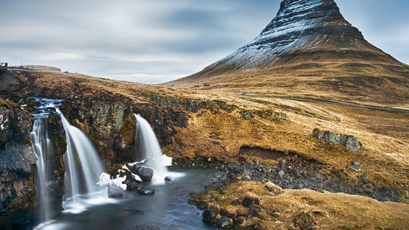 Wallpaper Mountain and waterfall