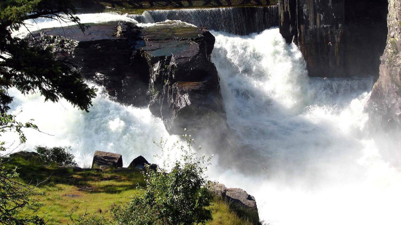 Wallpaper Falls among the rocks foams