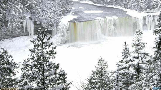 Wallpaper Frozen waterfall among the trees