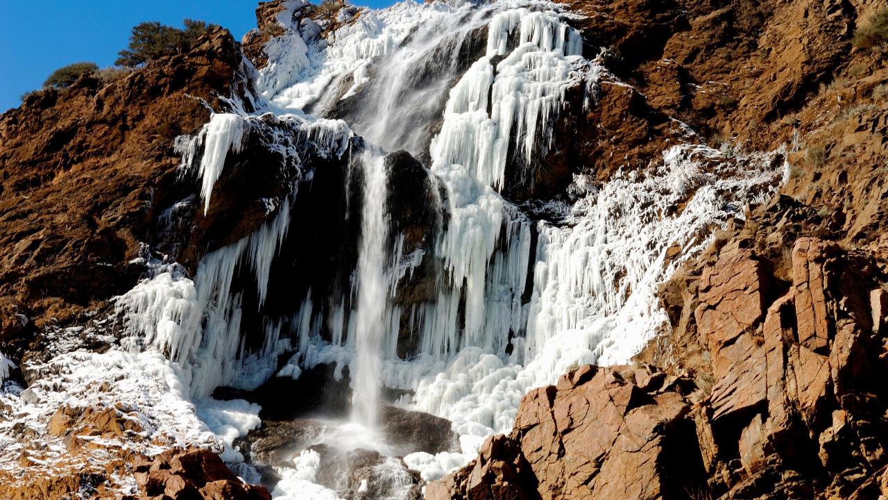 Wallpaper Frozen waterfall on stone mountain