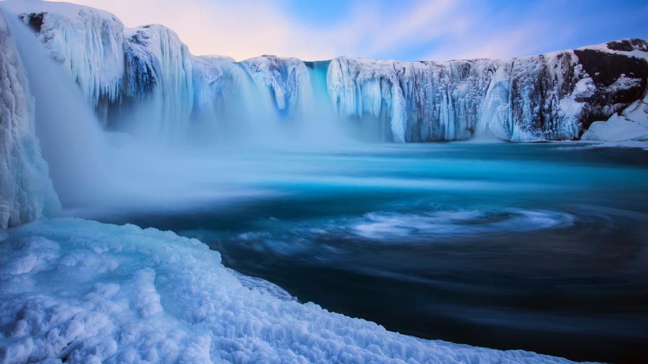 Wallpaper Frozen waterfall and blue lagoon