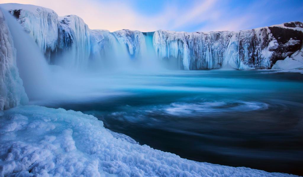 Wallpaper Frozen waterfall and blue lagoon