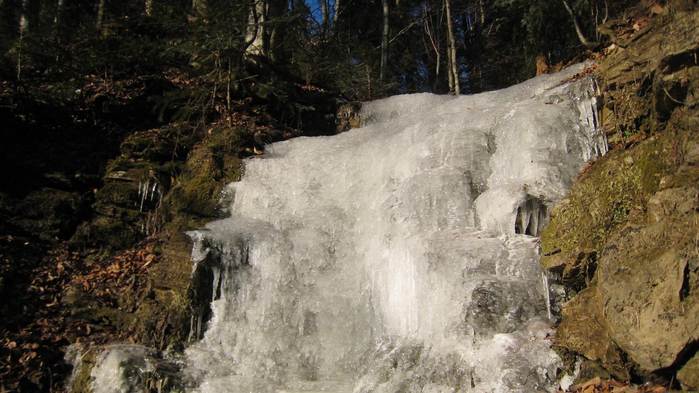 Wallpaper Frozen waterfall in the forest