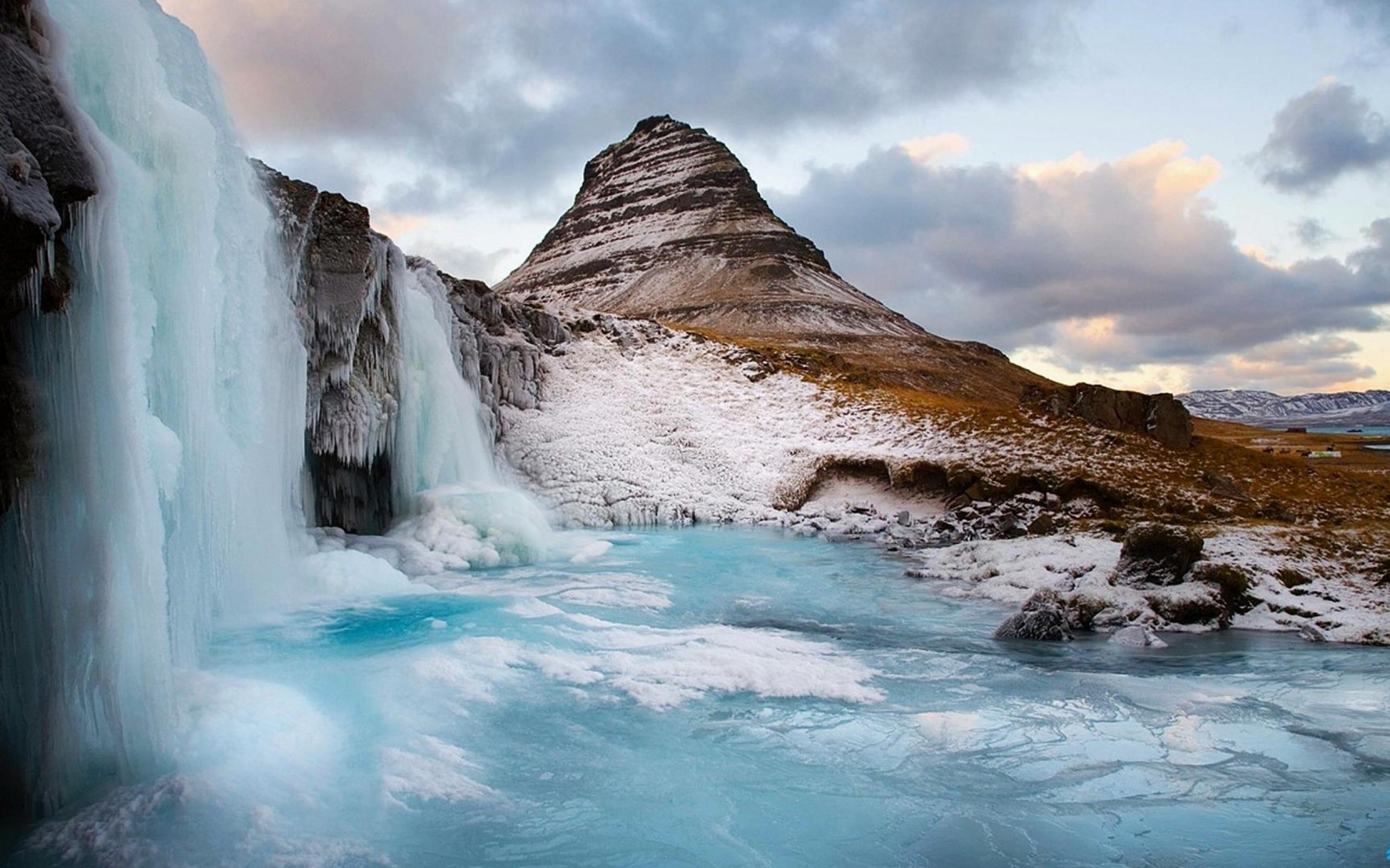 Wallpaper Frozen waterfall in the mountains