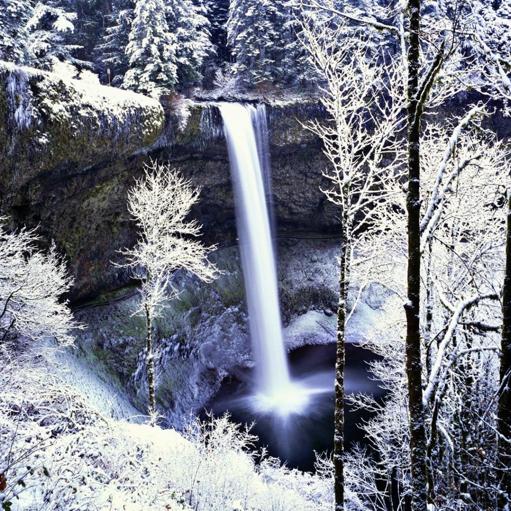 Wallpaper Frozen waterfall in white forest