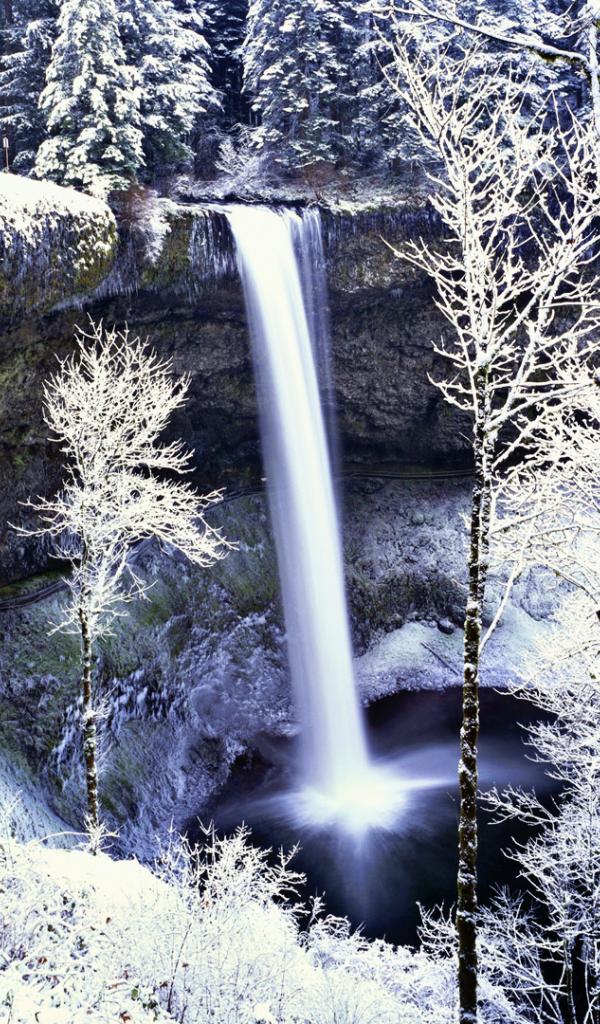 Wallpaper Frozen waterfall in white forest