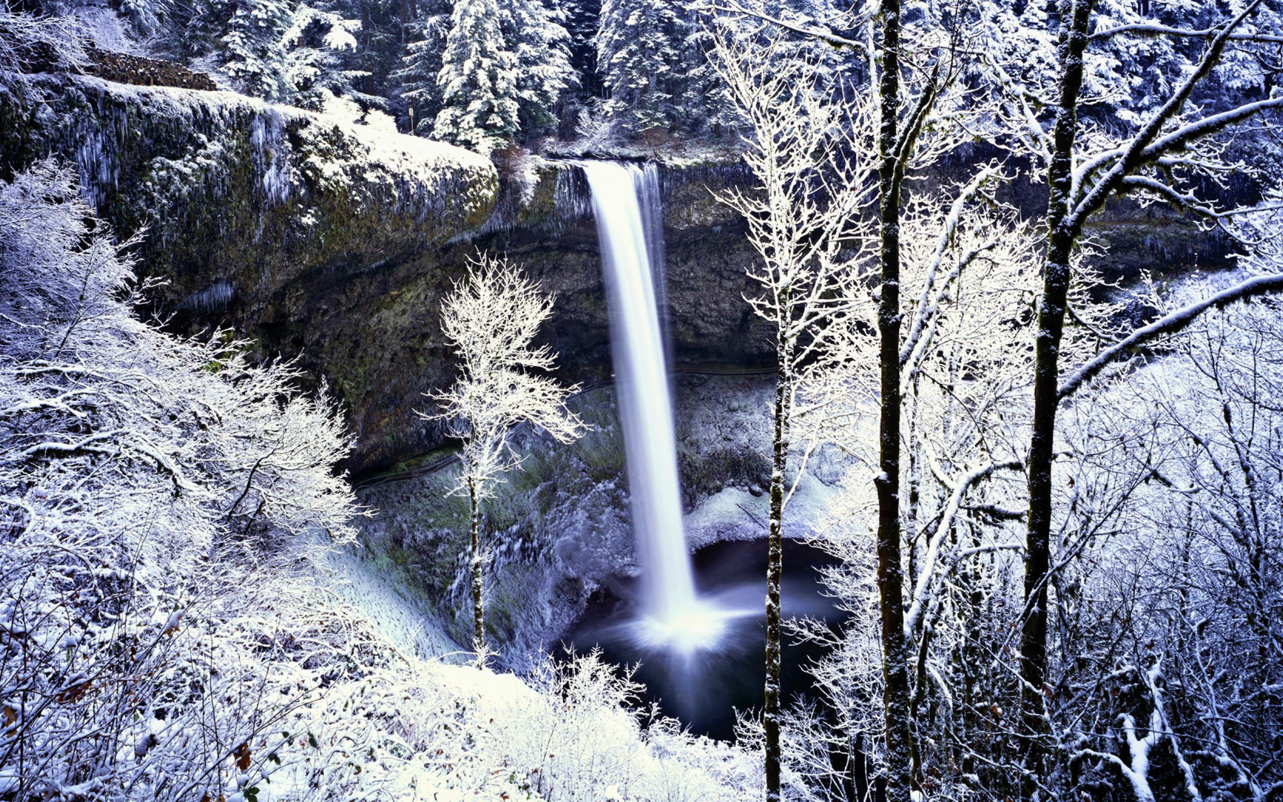 Wallpaper Frozen waterfall in white forest