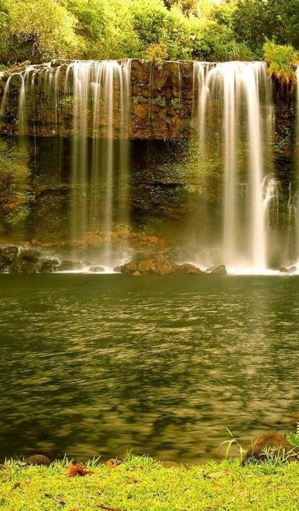 Wallpaper Golden green waterfall