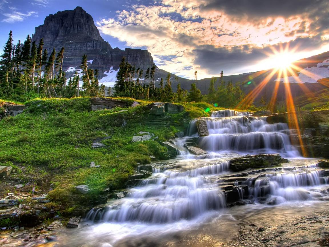 Wallpaper Waterfall in the sun
