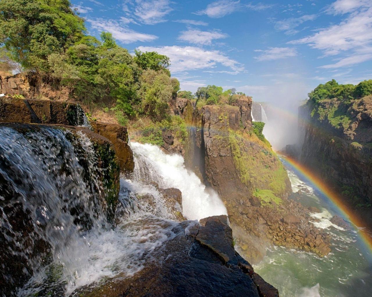 Wallpaper Waterfall with a rainbow