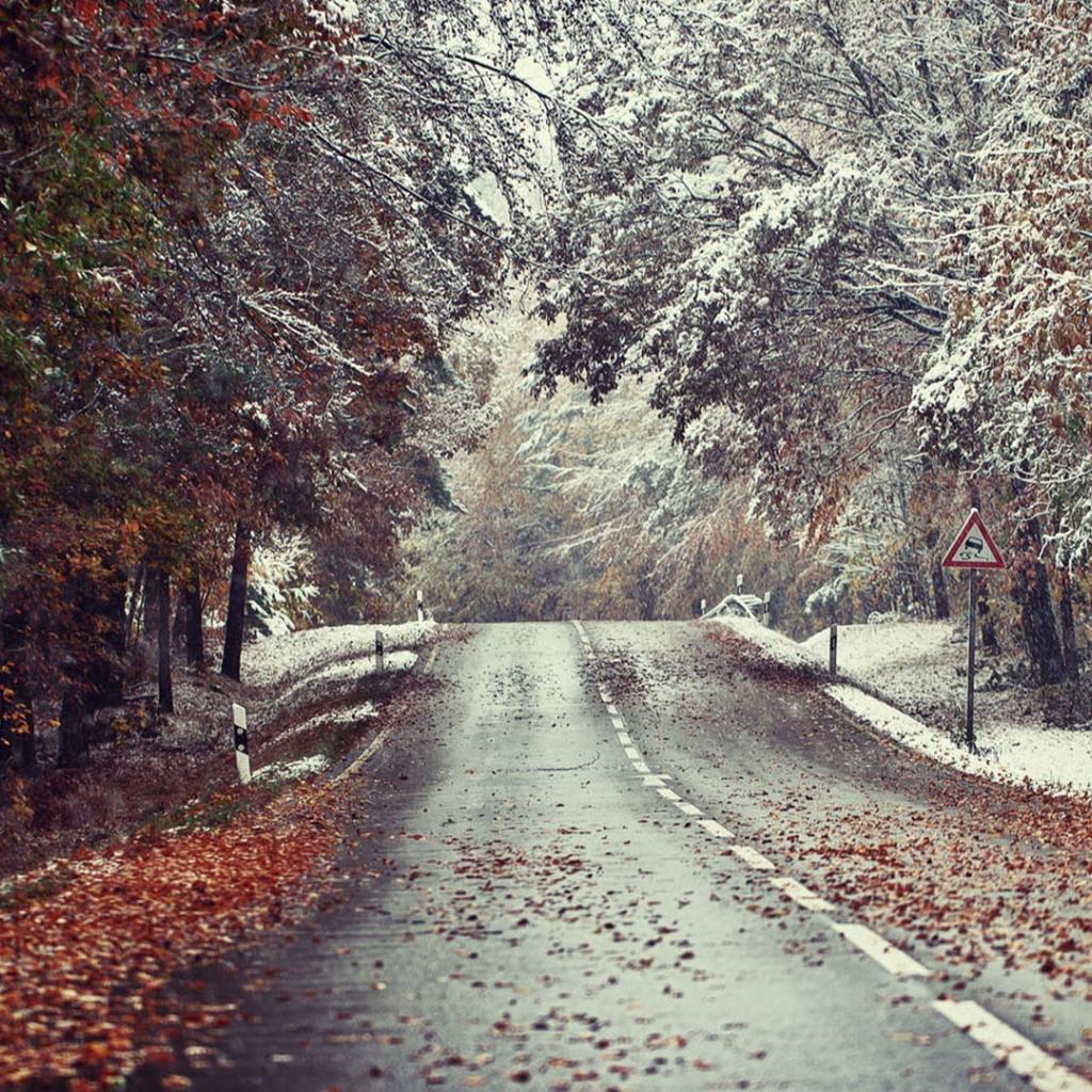 Wallpaper Meeting of winter and autumn by the roadside