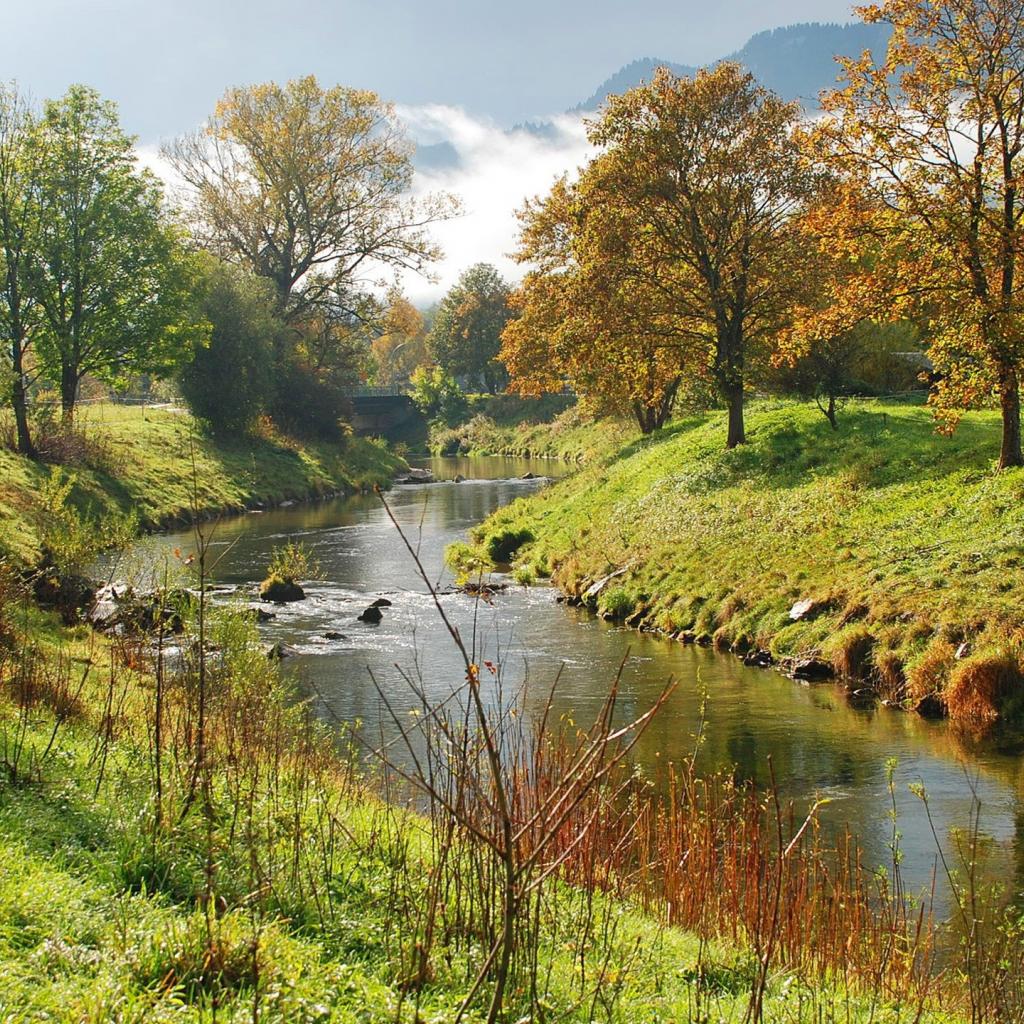 Wallpaper The river with the bridge among greenery