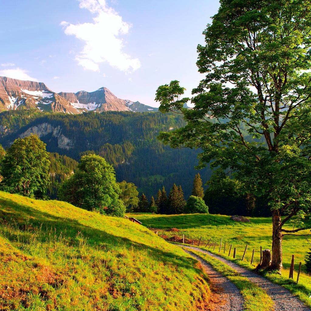 Wallpaper Green landscape with a tree beside the road