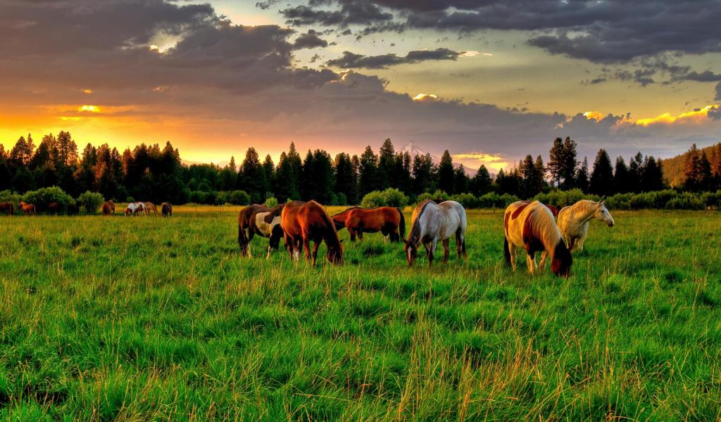 Wallpaper Herd of horses in the summer