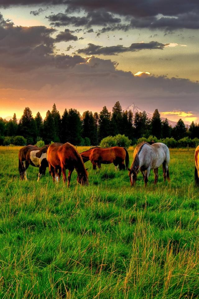 Wallpaper Herd of horses in the summer